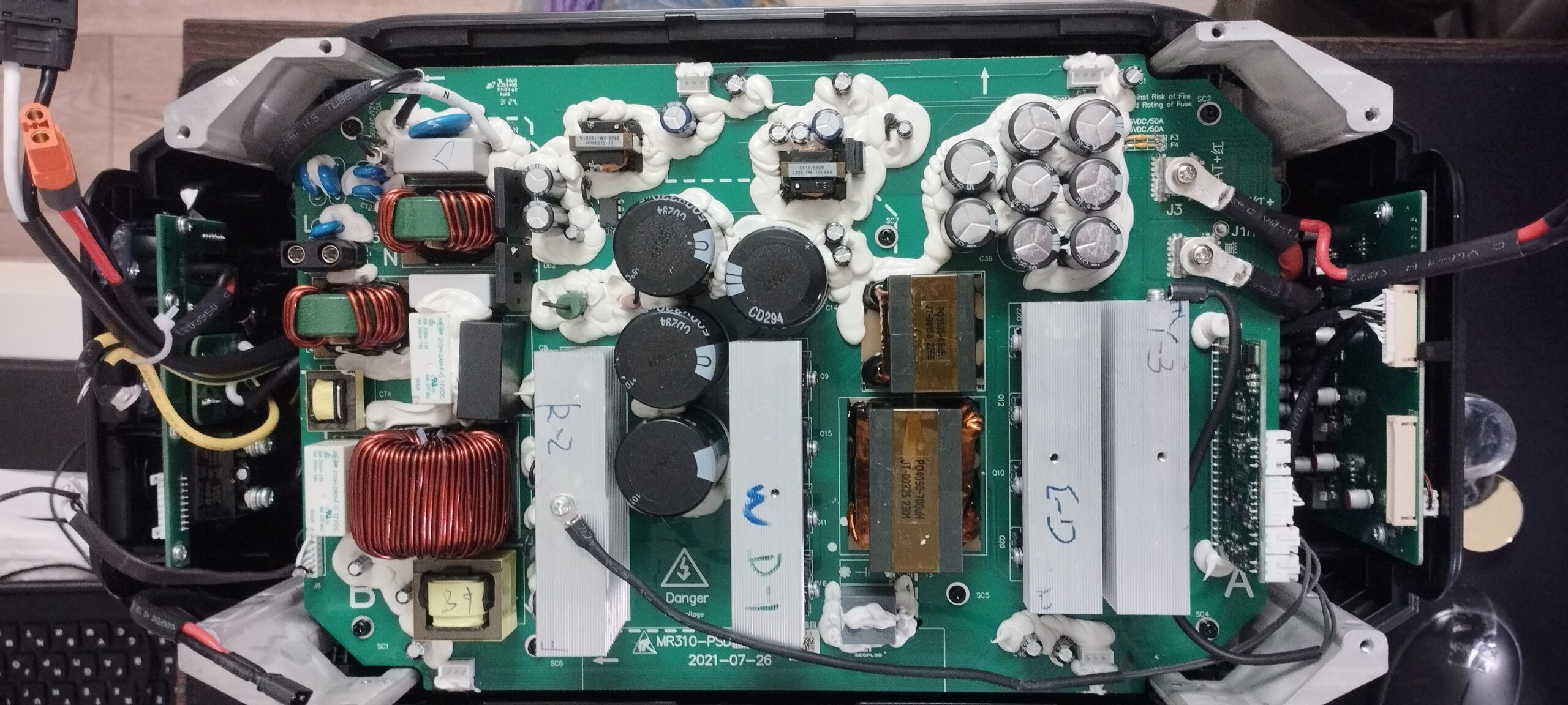 Ремонт інвертора станції Ecoflow Delta Max Вийшли з ладу три транзистори по високій, чотири драйвери та резистор на 390 Ом 5ВтТранзистори синхронного випрямляча залишились цілі, хоча драйвери їх вийшли з ладу. Замінено чотири транзистори, чотири драйвери, резистор та стабілізатор живлення драйверів на 15 Вольт. Плата MR310-PSDK-V1.0.5 (2021-07-26)Висока – G60T60AN3H, встановлено такі ж.Синхронник – CRGQ80N65F вижили.Драйвери […]
