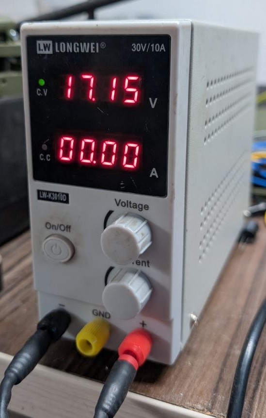 Прожектор DniproM DCL-200 до акумулятора шуруповерта.Не вмикається. В обриві два резистори, що стоять на виході перетворювача в паралель R16 1.8 Om та R17 – 1.2 Om. Разом дають 0.72 Om.Замінено на який був в наявності – звичайний з виводами. Поставив з іншого боку плати.